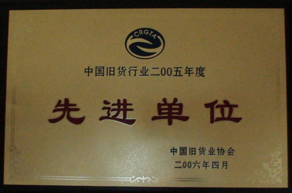 •  證書(shū)名稱(chēng):中國舊貨市場(chǎng)2005年度先進(jìn)單位