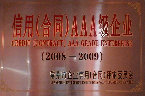 •  證書(shū)名稱(chēng):2008-2009信用(合同)AAA級企業(yè)